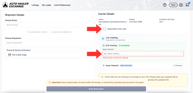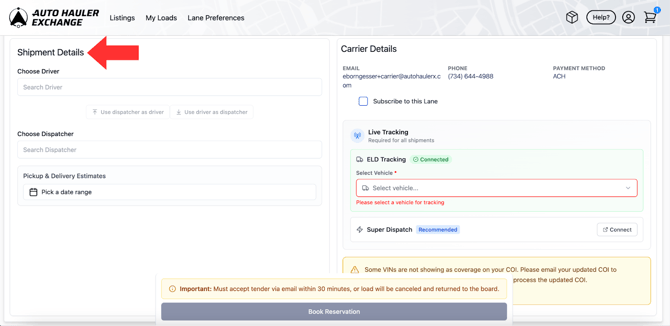 Start by logging into your Auto Hauler Exchange dashboard. If you don’t already have a carrier account, you can sign up for our platform.