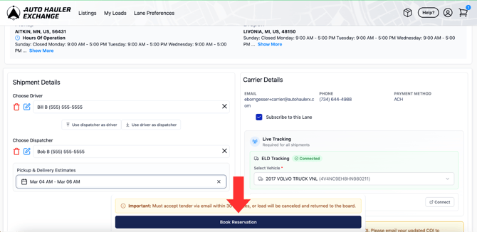 You will receive an email asking you to accept the tender offer. If you don’t accept the tender offer you will not be given the necessary information needed to transport the load. The tender offer must be accepted within 30 minutes or the load will be canceled and returned to the board.