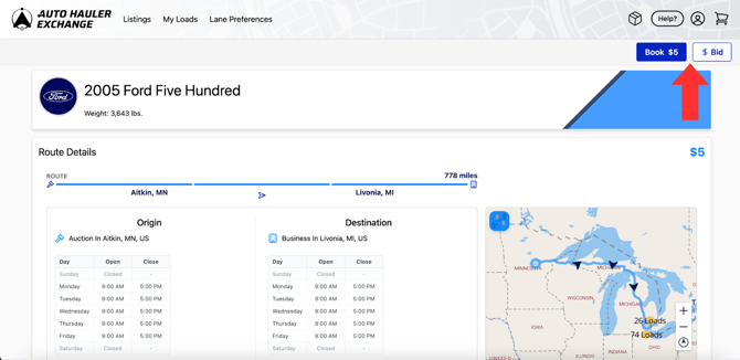 Click the blue “Book” button on the right side of the load that you wish to check out. This will add that load to your cart and automatically take you to the checkout page.